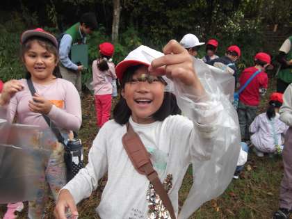 10月24日(木)1,2年生が自然観察の森に出かけました。午前中は、落ち葉、木の枝、木の実を拾って作品を作りました。子ども達の発想の豊かさにびっくり!