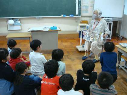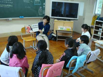 10月25日(金)読み聞かせをして頂きました。1〜3年の様子です。読んで頂いた本は、1年「きょうはハロウィン」他、2年「いちにちおばけ」他、3年「mommy!(仕掛け絵本)」他です。時期的にハロウィンにちなんだ本が多かったようです。
