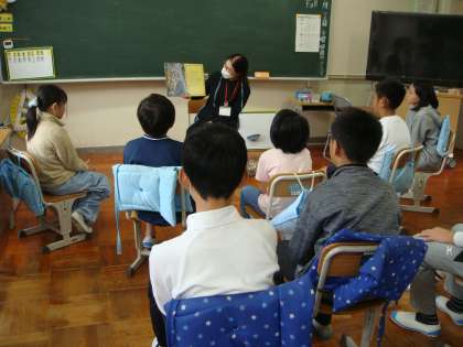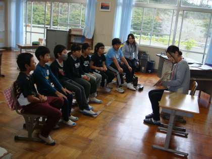 4〜6年までの様子です。今日は5,6年合同で読み聞かせて頂きました。4年「あしたもあそぼうね」他、5,6年「すいしょうだま(グリム童話)」他です。