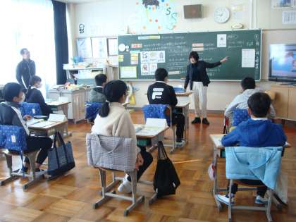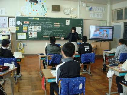 11月7日(木)1時間目、小原中学校の近藤先生が6年生に英語の授業をしてくださいました。小中連携のためのもので、6年生の子ども達には中学の英語の授業を体験できる良い機会となりました。また、本校の先生方にも英語指導法の研修にもなり、有意義な時間でした。