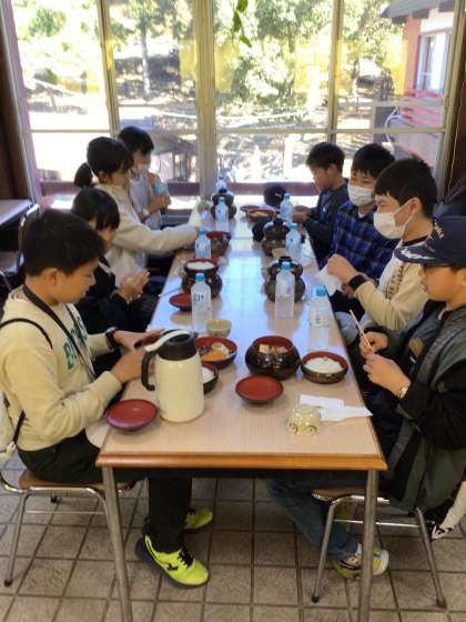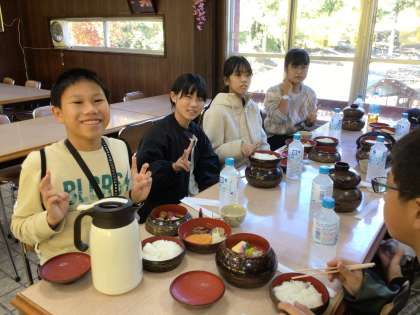 若草山の麓で昼食 全員元気です! 次は、法隆寺です。