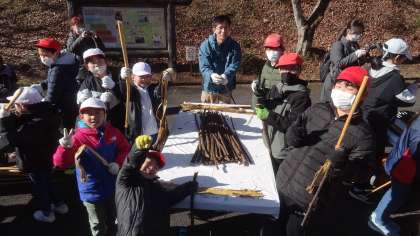 最初はコウゾ(和紙の原料)の皮がうまくむけずに苦戦していましたが、経験している6年生が手を貸してくれたことで、だんだんこつをつかみ、上手にむくことができるようになりました。楽しみながら小原の伝統に触れられた、充実した時間でした。