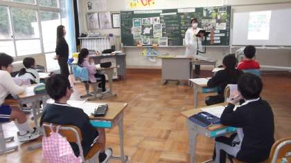 先週の3年生に続いて、2月3日(月)に4年生が食に関する指導を受けました。「給食に豊田市産の食べ物を使うのはなぜだろう」というテーマで北部給食センター栄養教諭の松岡先生に授業をしていただきました。献立表を使って、給食で使われる豊田市の農産物を調べたり、その理由を考えたりしました。指導をしていただいてから地産地食に興味を持ち、毎日の給食を意識して食べています。