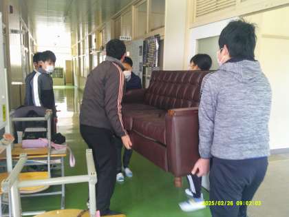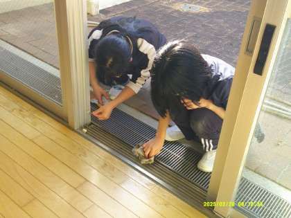 6年生が卒業を控え、6年間過ごしてきた学校の掃除をしてくれています。今日は会議室とのびっこルームのワックスがけをしてくれました。机などを運び出し、埃を取り、水拭きをしてからワックスがけです。皆で協力して楽しそうに作業を進めていました。