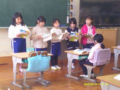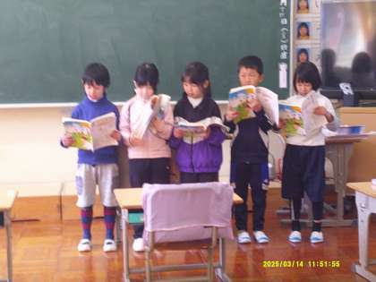 グループ毎に「スイミー」の音読の練習をし、発表をしました。張りのある声でしっかり読めていました。もうすぐ2年生になる、という気持ちがあるからでしょうか、張り切っているのが感じられました。