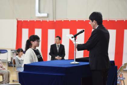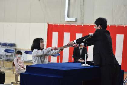 3月24日(月)修了式が行われました。学年毎に一人ずつ担任の先生に名前を呼ばれ起立し、代表の子が校長先生から修了証書を受け取りました。どの子も1年間頑張ったことが頭の中に浮かんでいたことと思います。みんな充実した1年だったことがうかがわれる表情をしていました。