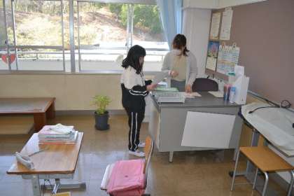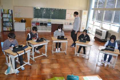 小原中部小学校の授業が始まりました。子どもたちの元気な声が校内に響き渡ります。