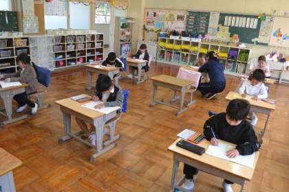 小原中部小学校には、朝の会の後、「朝学習」という時間(8:30−8:45)があります。各学級ごとの課題を設定し、子どもたちは前向きに取り組んでいます。