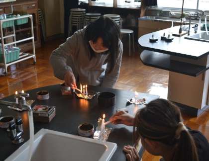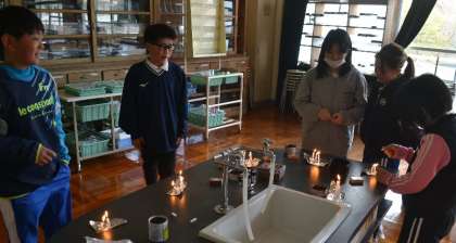 4/15 6年 理科の授業 4 公開日 2025/04/16 更新日 2025/04/16 お知らせ 🔥「ものが燃えるとは?」実験して事象を体感!🥔 一人調べで問題意識を高めた6年生。「空気」「酸素」「二酸化炭素」「燃えるもの(ろうそく)(線香)」「光」「熱」「反応」「エネルギー」「条件」といったキーワードを共有した上で、実際に、ものを燃やす実験をし、「ものが燃える」事象を体感しました。 今後、さらに追究を深めていきます・・・。