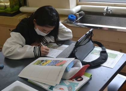 生徒たちは、前回の授業で、校庭や学校周辺に足を運び、身近にある植物をじっくり観察しています。「これ、何ていう植物だろう?」と、高い意欲をもち、集中して取り組む様子が印象的でした。