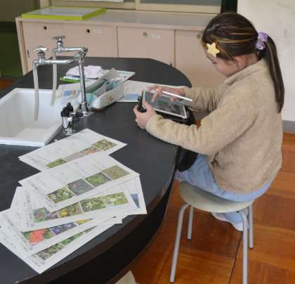 学校敷地内に生息する植物について調べる学習です。植物の名前や分類、特徴を詳しく知るために、インターネットを活用した調査に挑戦しました。