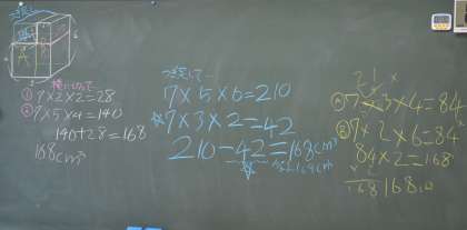 直方体の組み合わせ方を考えて、ばらしたり、足したり、引いたり、複数の計算方法を見出すことができました。正解は一つですが、正解にたどり着く道は、一つじゃない!