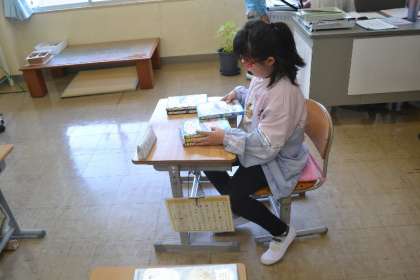 子どもたちは、教科書やノートを開き、前日の復習をしたり、新しい学習に向けた予習をしたりします。また、計算練習や漢字の書き取りなど、基本的な学力を高めるための活動も行われています。さらに、教科授業の時間に使うものをつくったり、整えたり、準備したりすることで、授業をスムーズに進めることができるようになっています。