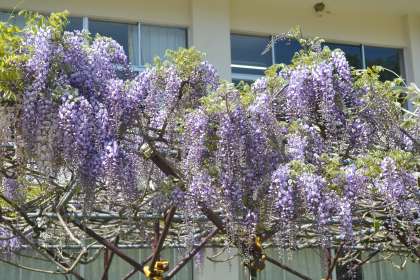 この美しい藤棚のフジは、来週にかけてさらに見ごろを迎える予定です。ぜひ、学校に訪れた際には、藤棚の下で春の息吹を感じてみてください。
