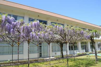 藤棚のフジは、毎年この時期になると、次々と花を咲かせます。そのスピード感には驚かされるばかり。登校する子どもたちを、美しく咲き誇る花々が迎え、学校全体が春の華やぎに包まれています。