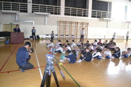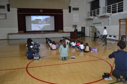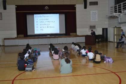 2・3・4年生を対象に、豊田市役所から講師をお招きし、体育館で「子どもの防犯教室」を開催しました。