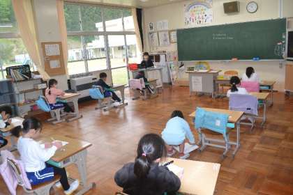 2年生の子どもたちは、この時間、算数のテストに取り組みました。問題を解き終わった後、それぞれが慎重に見直しを行い、自分の判断で終了して提出。その後の時間を有効に活用し、昨日実施した防犯教室の振り返りを行いました。