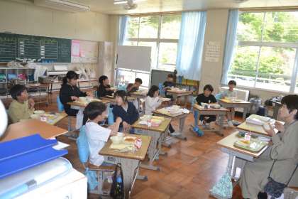 小原中部小学校の給食時間は、ただ食事をするだけの時間ではありません。それは、温かい会話が飛び交い、笑顔が広がる、楽しいひとときです。