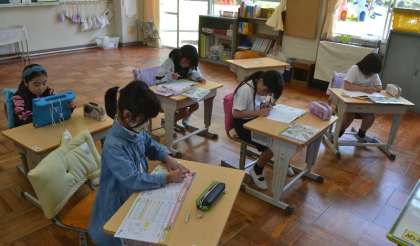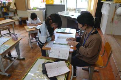 「先生、ここがわかったよ!」「次はこの問題に挑戦したい!」と、自分の学びに意欲的に取り組む子どもたち。担任のていねいなアドバイスを受けながら、一人一人が算数の力を伸ばしていきます。