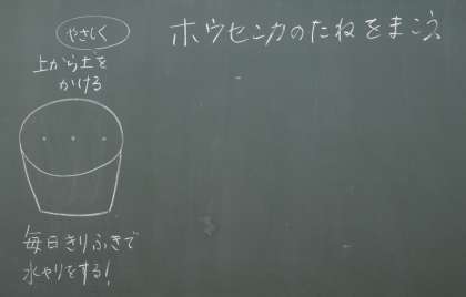 3年生は理科の授業で、ホウセンカの種まきを行いました。子どもたちは自分の育苗ポットに土を入れ、ていねいに準備をしながら、種を優しくまきました。