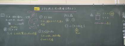 6年生が算数の授業で「文字を使った式の意味を考えよう」というめあてのもと、学習を進めています。数だけではなく、文字を使って表すことで、より一般的な考え方を整理できることを学んでいます。