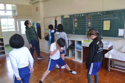 子どもたちは、教室にある具体物を例にとりながら、式の意味を探っていきました。「この教室には床のマスが〇列あるね」「1列のマスの数をxとすると…」と、実際の場面を数学的に表現していました。文字を使って式を立てることで、ものの関係をより明確にとらえることができることを実感していました。