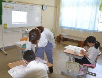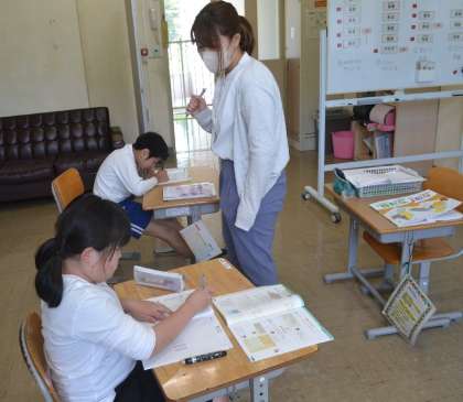 担任は、それぞれの学習内容に合わせて的確な指導を行い、子どもたちが理解を深められるようサポートしています。「わかった!」「もっと考えてみたい!」と、意欲的に学ぶ子どもたちの姿が印象的でした。