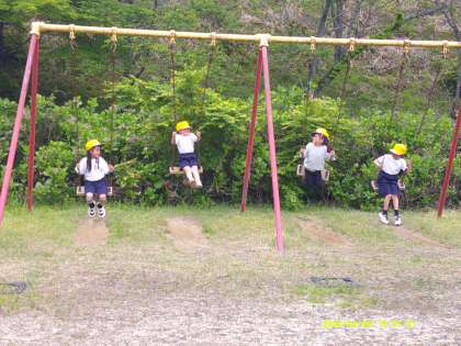 上の運動場ではブランコを楽しむ子、虫とりをする子、ボール遊びをする子など思うままに体を動かして楽しんでいました。
