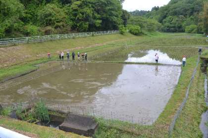 朝から曇り空が広がり、暑さの心配もなく、子どもたちは元気に田んぼへと向かいました。絶好の田植え日和です。子どもたちの日ごろの行いのよさが、こういった最良の天候に表れています。