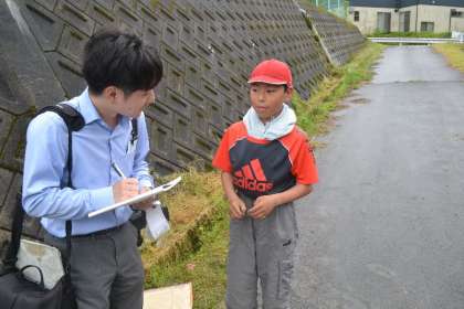 ちなみに、この「小原中部小学校の田植え」は、テレビ局や新聞社の取材対象となっています。代表の5年生が記者の取材を受け、学校での取り組みをていねいに説明する場面もありました。