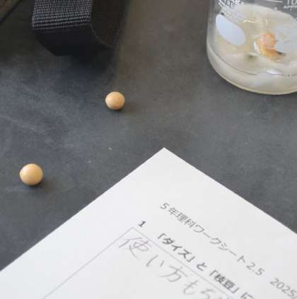 前回の授業から、種子の観察・実験をした中で、一つの発見が生まれました。「ダイズと枝豆って、同じ植物だったのか!」