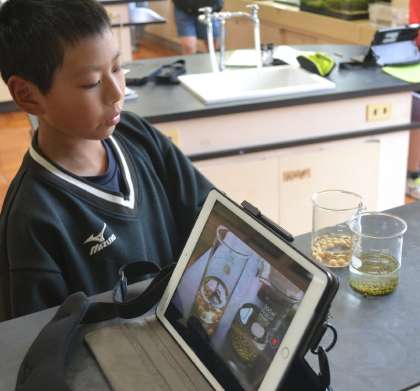 変化を記録するために、「iPadの【タイムラプス】を使えばいいよ!」と、自分の学習用タブレットを取り出し、撮影を開始。