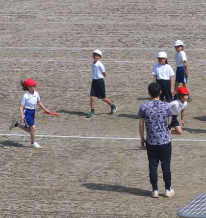 バトンパスの練習では、「受け取るタイミングが大事!」と声を掛け合いながら、スムーズに受け渡せるよう工夫を重ねます。「もっと腕を伸ばしてみよう」「次の走者がスピードを落とさずに受け取れるように!」と、仲間と相談しながら改善を繰り返す姿が印象的でした。