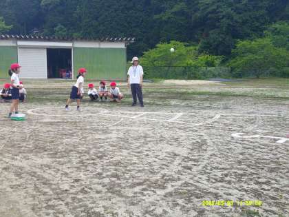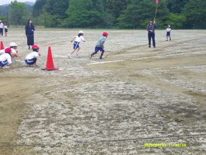 1〜6年まで、一斉に体力テストを行いました。霧雨のような雨が降り、雨のやむのを待って4時間目の実施になりました。