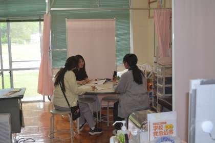 養護教諭を目指す教育実習生が、指導担当の養護教諭や教務主任の指導を受けながら、授業づくりの準備を進めています。未来の学校を支える養護教諭としての第一歩を踏み出し、一つ一つ、学びを積み重ねています。