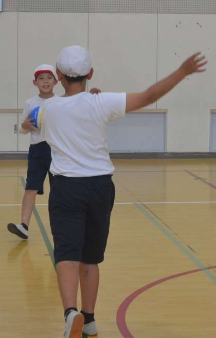 体育館では、「ナイスパス!」「もう一回チャレンジ!」と声が飛び交い、ペアやチームで息を合わせながら練習に励む姿が見られました。仲間と協力することの大切さや、パスを成功させた時の達成感を感じながら、楽しみながら技術を磨いています。