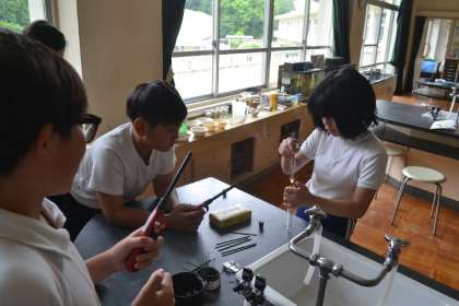 さらに、試験管に集めた酸素だけで、何回「ポン!」ができるかを競うゲームを行いました。一人ずつ慎重に線香を入れ、酸素を無駄にせず何回燃焼できるか、挑戦です!