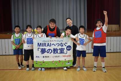 小原中部小学校の5年生を対象に、「夢の教室」が開催されました。この特別授業は、豊田市の施策により、豊田市スポーツ振興課が事務局となって、公益財団法人日本サッカー協会(JFA)、トヨタ自動車株式会社、中京大学との連携で実施されるもので、市内の小中学校76校で行われます。