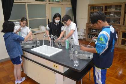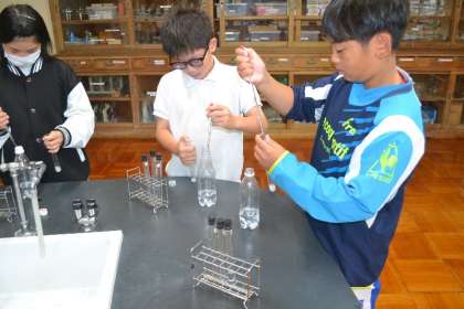 6年生の子どもたちが、二酸化炭素の性質について、さまざまな実験を行いました。