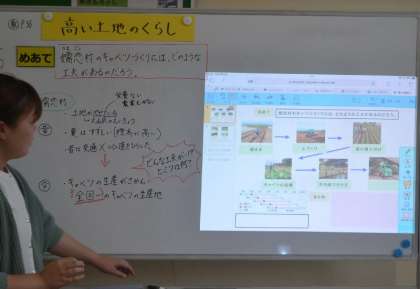 のびっこ学級の5年生は、社会科の「高い土地のくらし」という単元で、「嬬恋村のキャベツづくりにはどのような工夫があるのだろう」という問いをもとに、授業を進めています。