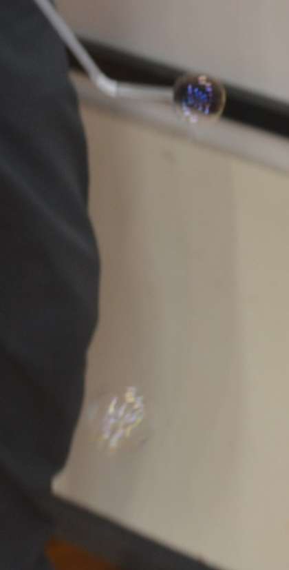 いざ実験開始!子どもたちは二酸化炭素で作ったシャボン玉をそっと空中に浮かべました。すると、そのシャボン玉は、すうっと床へと落ちていきます。その様子を見た瞬間、子どもたちの表情が輝きます。「本当に空気より重いんだ!」と、実感を伴った理解が得られた瞬間です。