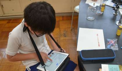 結果はこちらです(下の写真)。気体検知管の変化に手ごたえを感じた子どもたちは、この気体検知管の結果が妥当かどうか、インターネットで確認する姿を見せました。自分が行った実験の精度が気になる意識、さすが優秀な6年生集団です。