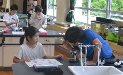 5年生の理科の授業では、メダカの卵の観察に挑戦しました。しかし、最初はなかなか卵を見つけることができず、苦戦…。それでも子どもたちはあきらめずに粘り強く取り組みました。