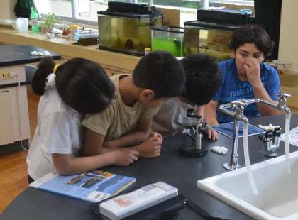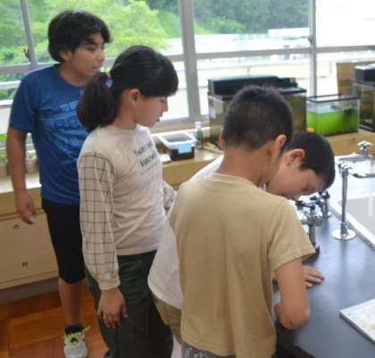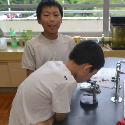この日、初めて使用した解剖顕微鏡ですが、子どもたちはすぐに操作方法を覚え、器用に扱っていました。