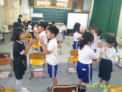 元気に校歌を歌うところから授業が始まりました。校歌は4拍子の曲です。・・・