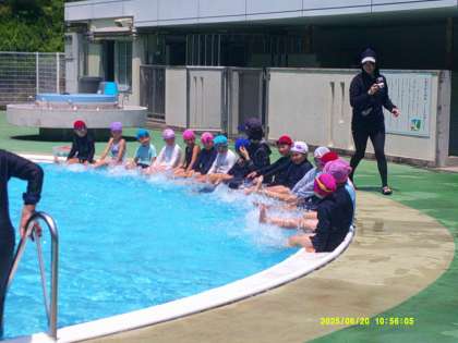 1、2年生は、数日前からの異常な暑さの為、WBGT(暑さ指数)が高過ぎてなかなかプールに入ることができませんでした。今日はなんとか今年度初めてのプール学習をすることができました。