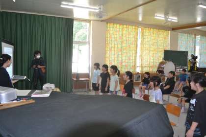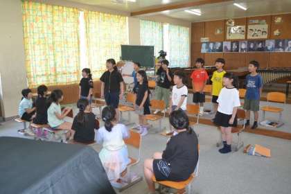 3・4年生の音楽の授業にも、番組制作取材が入りました。取材スタッフの前でも、子どもたちはいつも通り元気いっぱい。教室には、明るくのびやかな歌声と、心を込めて演奏するリコーダーのやさしい音色が響いていました。