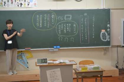 黒板にまとめたポイントを何度も確認し合い、実際の発表では、それぞれが自信をもって話し、聞き手の反応を感じながら発表する姿が印象的でした。