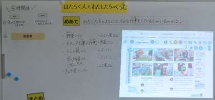 のびっこ学級の社会科では、3年生と5年生が同じ時間に、それぞれの学年の学びを進めています。個々の学びを大切にしながら、同じ空間で異なる内容の授業が同時に展開されるという、まさに“学びの共演”が日々行われています。