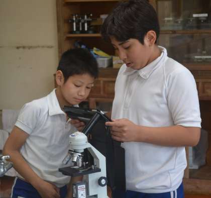 5年生の理科では、「微生物の観察」をテーマに顕微鏡を使った学習を行いました。